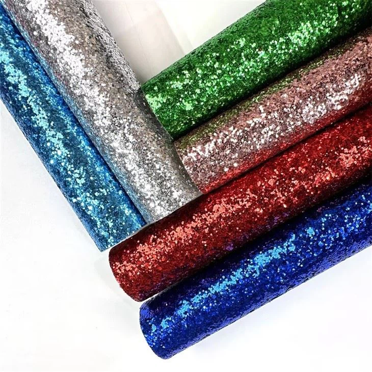- PU Chunky Glitter Faux nahk on ainulaadne ja pilkupüüdev materjal, mis on viimastel aastatel üha populaarsemaks muutunud. See glamuurne materjal on valmistatud polüuretaani ja sära segust, mille tulemuseks on läikiv ja läikiv välimus, mis sobib suurepäraselt mitmesuguste moe- ja dekoratiivsete esemete jaoks.